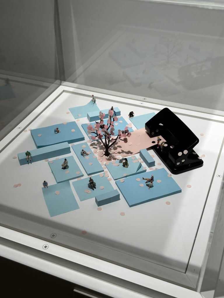 ↑こちらは「ふせんで場所を確保」という作品。お花見だね?