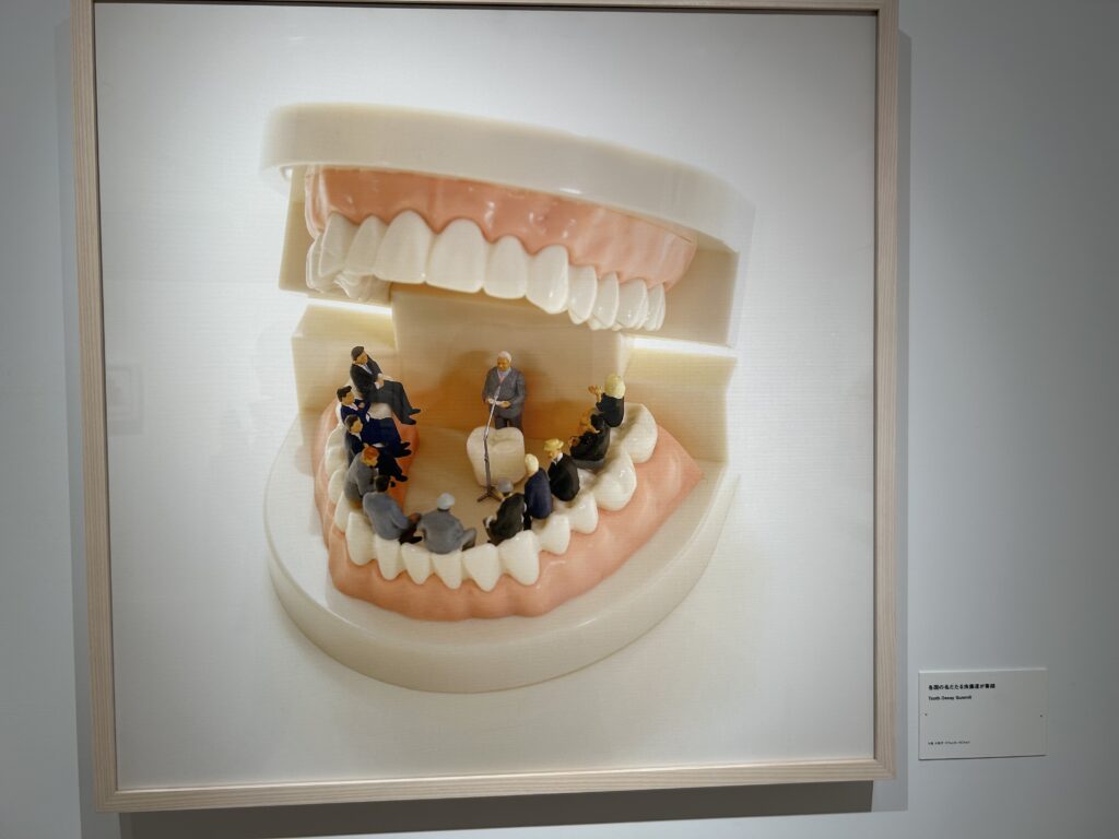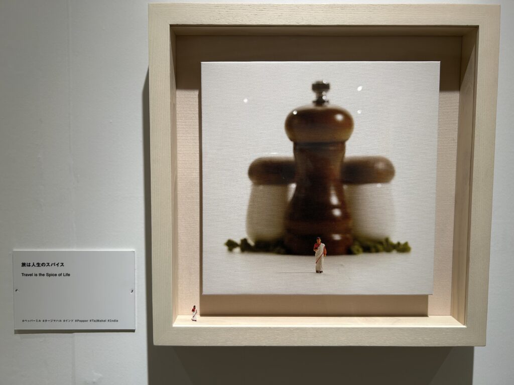 このアート展はMINIATURE LIFE展~田中達也 見立ての世界~というもの。色々な物を他の物に見立て、作品を作り、写真に撮ったもの、と理解している。