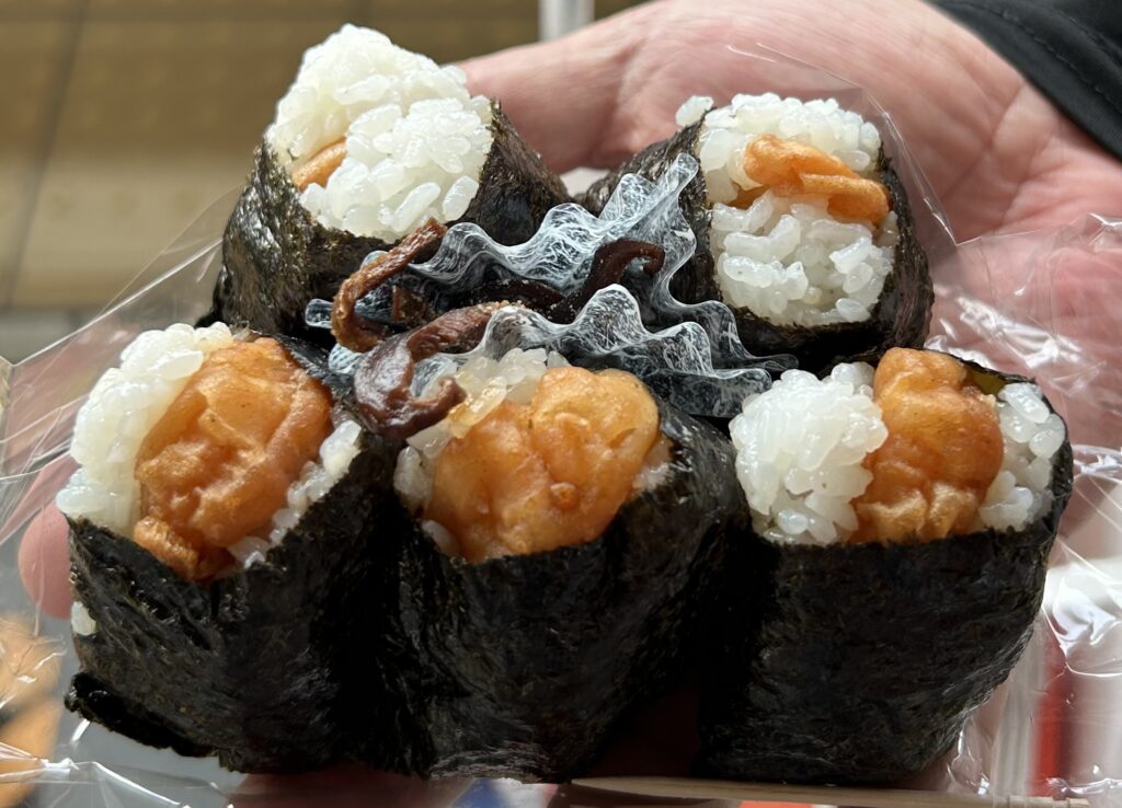一つ一つが小さくてかわいい天むす。一緒に食べようと言われたけれど、ちょっと一口もらうだけにした。朝ごはんは食べたし、お昼が食べられなくなると思って。しかし、お昼はけっこう遠かったのだった……。付属の塩昆布がめっちゃ美味しかった。塩昆布ってこんなに美味しかったっけ?