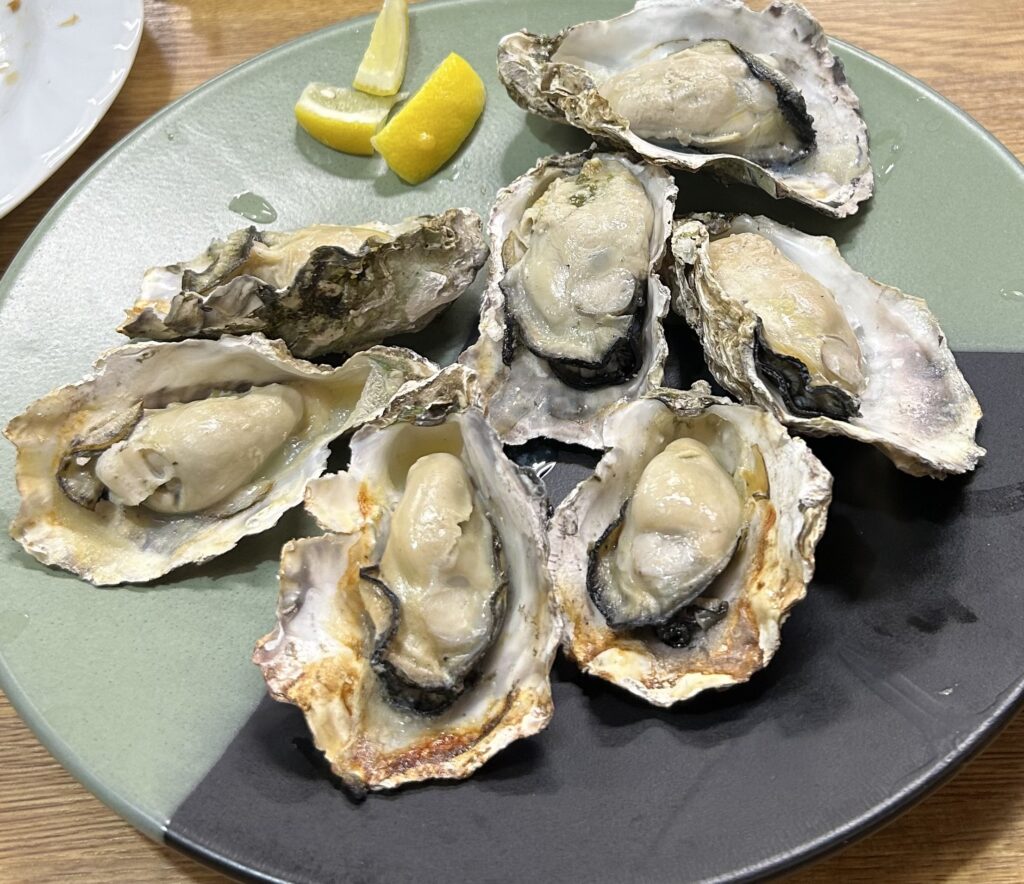 そして後から来たのが焼きガキ。今の季節、生ガキは提供されないようだ。しかし、焼いてあってもすごく美味しかった。やっぱり広島のカキは最高だ。