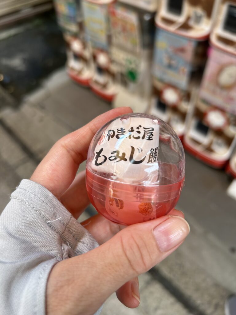 屋根のあるお土産屋の通りを覚えていたが、店はすっかりおしゃれになって様変わりしていた。あ、ガチャガチャ!やってみた。