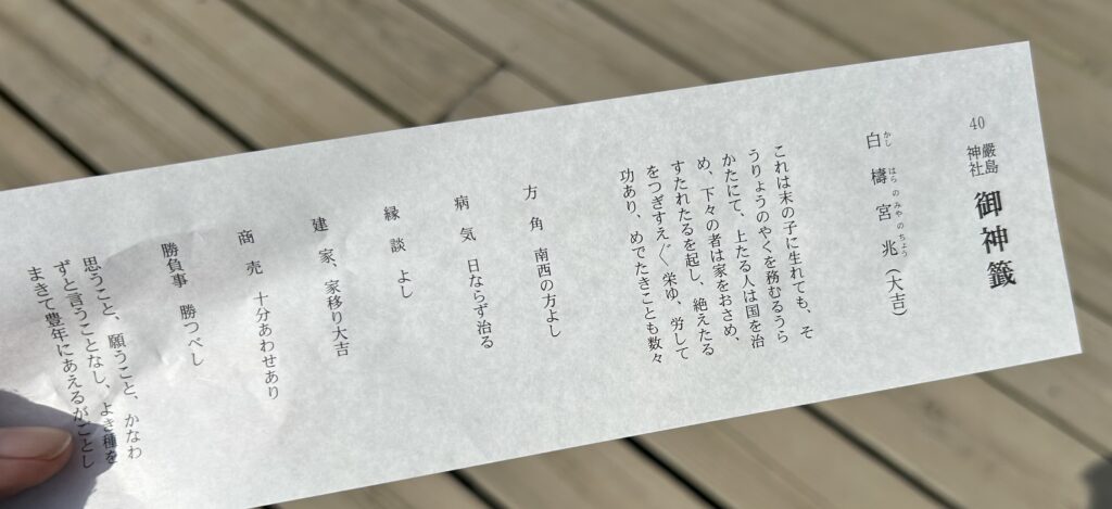 実は宮島には、高校の修学旅行で訪れている。あの時は車が乗るところにわらわらと生徒が乗ったな。夕方で、鳥居と満月を薄紫色の空を背景に見た!という記憶があるのだが、写真もなくてだんだん脳内美化しているかもしれないと疑っている。