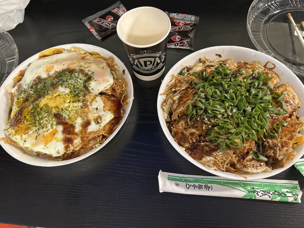 お好み焼き。あえて広島風とは言わないよ。でも、ちゃんと焼きそばが入っている。左がチーズとダブル卵って感じで、右がネギと土手煮って感じかな。ちょっと冷めたし、どうも思ったほどではないと思った。まだ6時前でお腹があまり空いていないのかなとも思ったり。