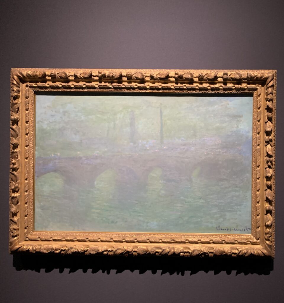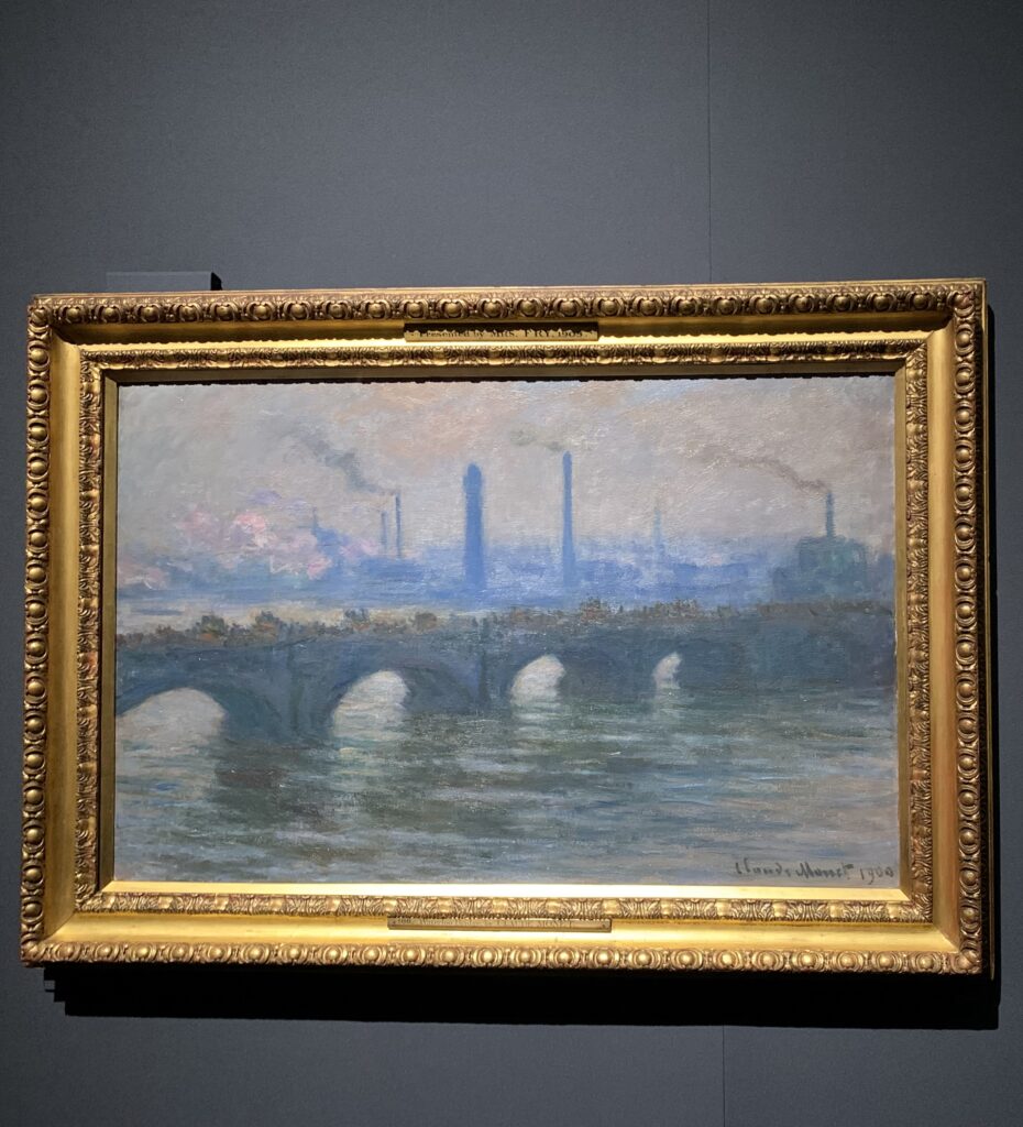 積わらも、雪が被っていたりした。それから、ウォータールー橋の絵も。夕暮れや日没など、橋が見えるベランダからいくつも描いたそうだ。そう、パリの絵は、病院とかホテルとかから描いたらしい。なかなかの執念。