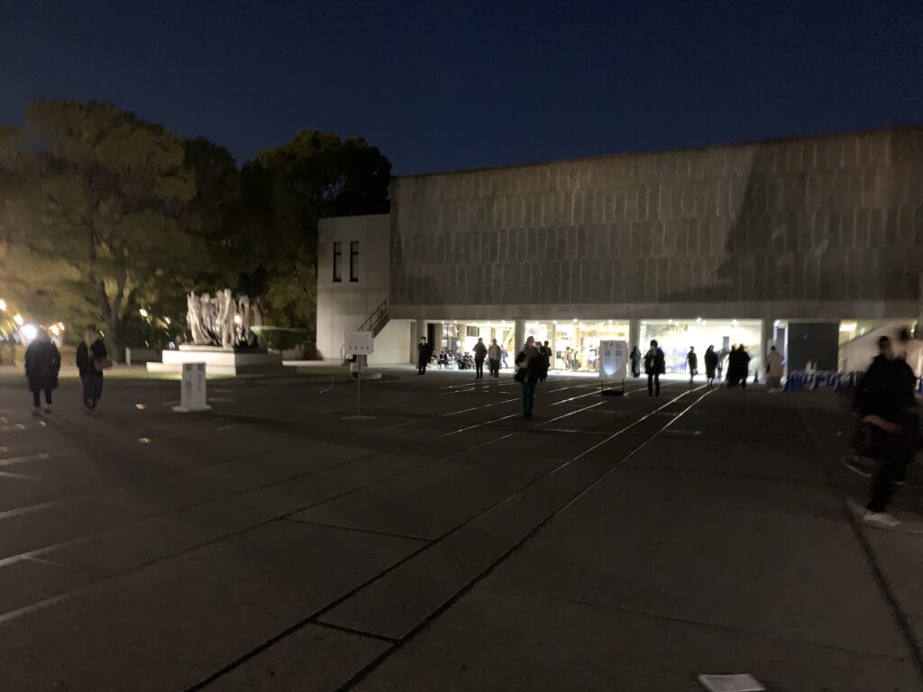 人通りはあるのに、やはり外は真っ暗。門の所にちょっと明かりがあってもいいのにな。LEDなら電気代もそれほどかからないと思うのだが。そこはやっぱり国の施設だな。民間の施設だったらこんな事にはなっていない気がする。向かい側の建物の灯りでほんのり見えるが、あれがなかったら階段が危ない。