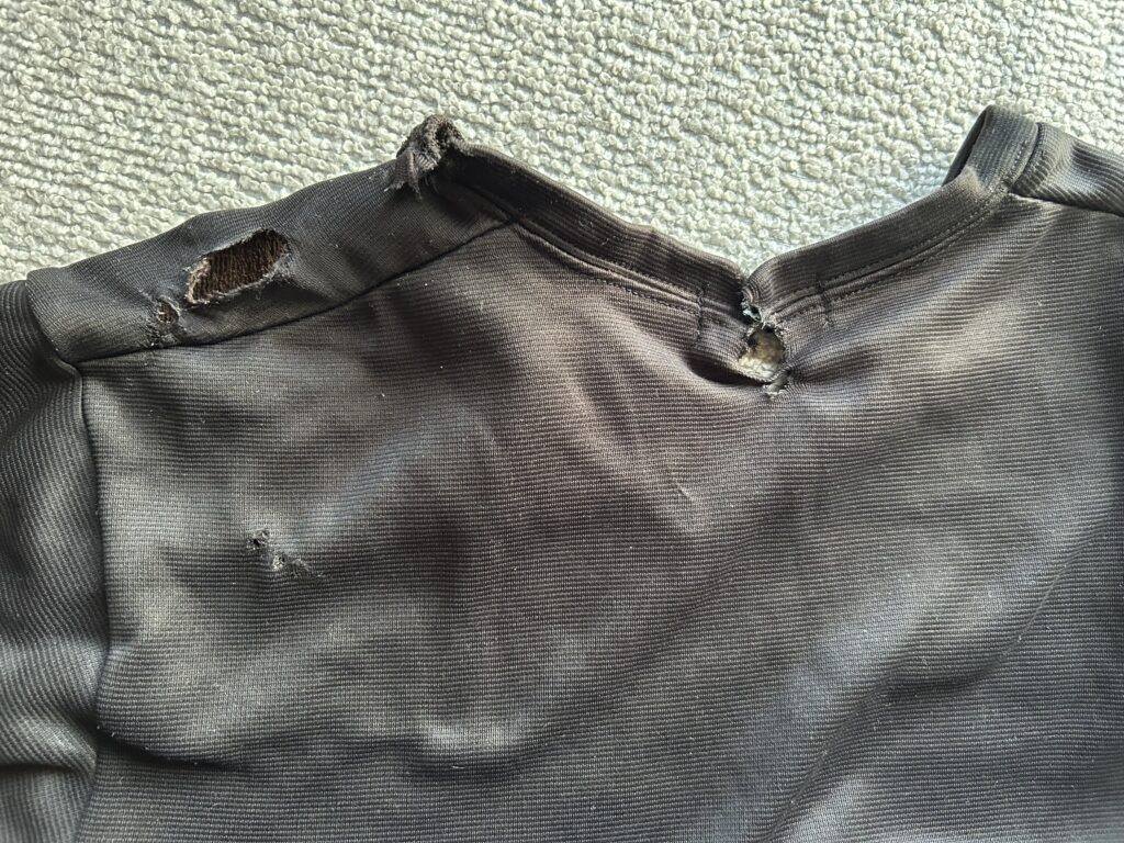 買い替えて1カ月ほどで、一枚の服が洗濯の途中で破けた。だが、それは私が洗濯物を詰め込み過ぎたせいだと思った。その辺はブログに書いた。それはこの服だ↓