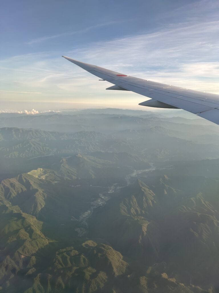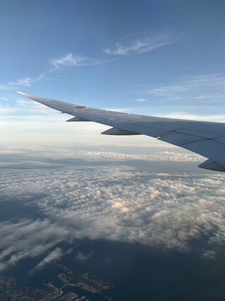 飛んだ!地上は曇りがちだったが、おかげで上から見ると雲が綺麗。