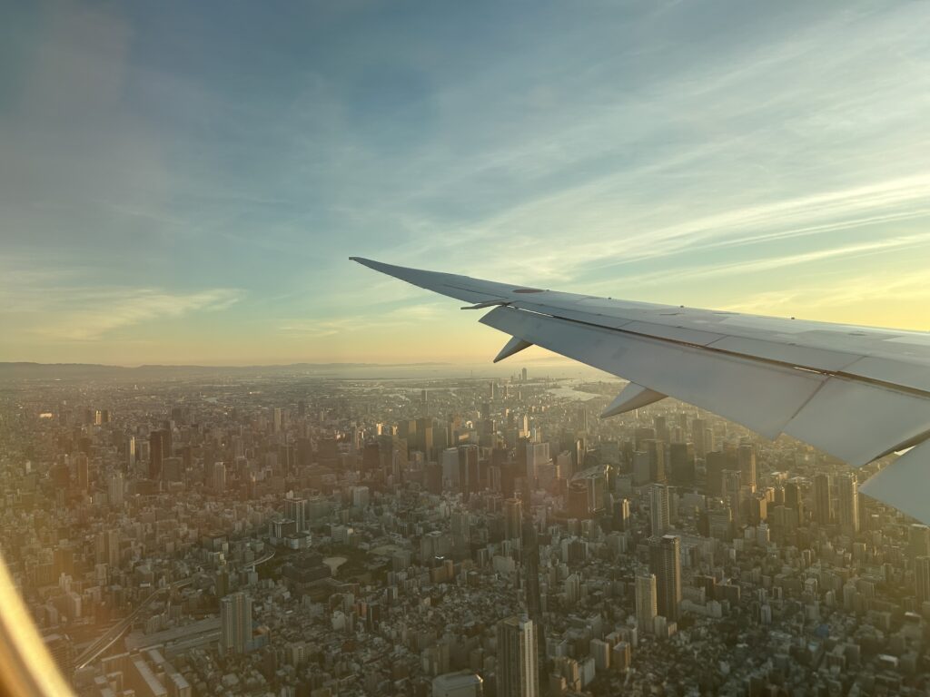 順調に離陸。17時のフライトで、伊丹空港に18時10分に到着予定。