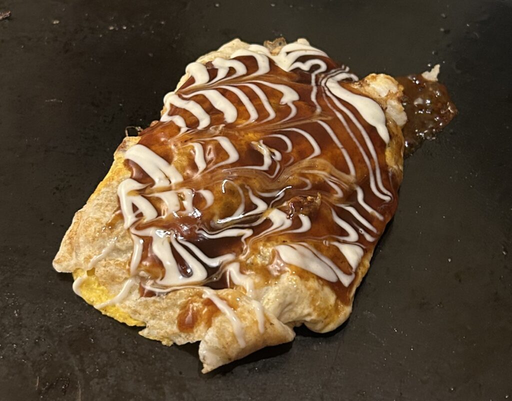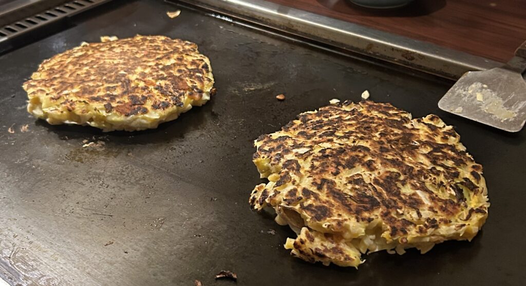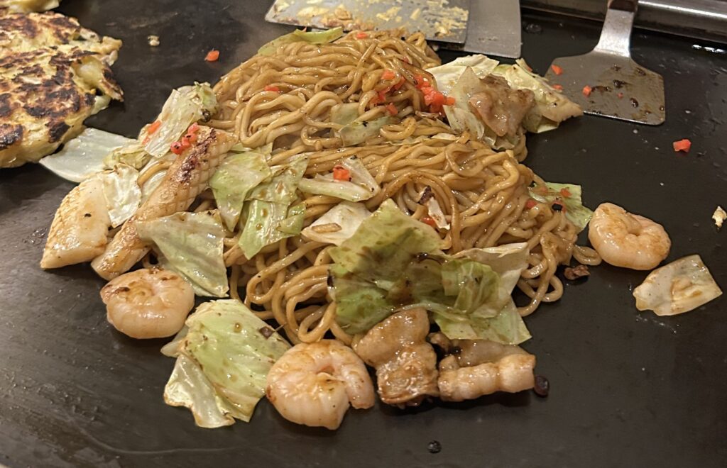 始めはたこやき屋を探していたが、検索して探しあてたのがテイクアウトの店だったので、別の店を適当に目視で探し、鉄板焼きの店に入った。たこ焼きは無かったけど。