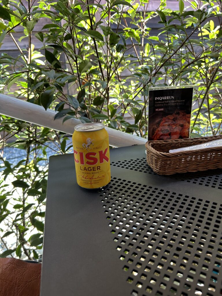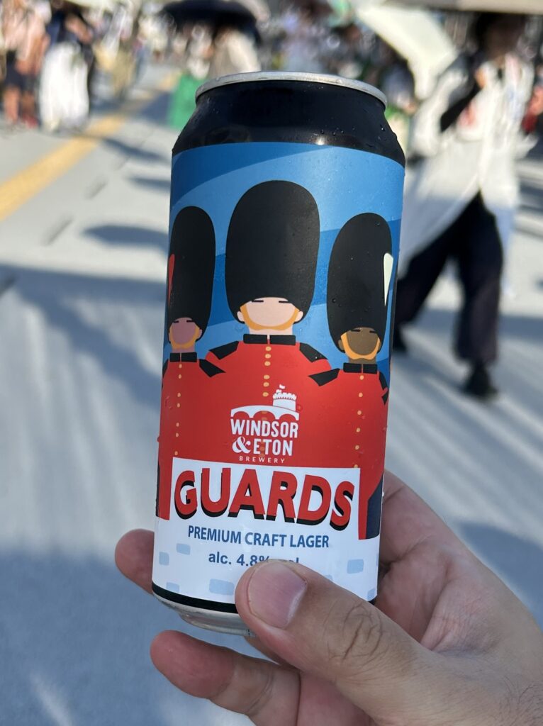 ここではショップでお土産も買ってしまった。まずは夫がさっと買って早速外でプシュッと開けたビール。