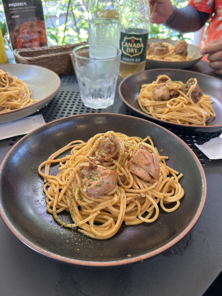 スパゲッティも、食感は何となくあれだったが、味は美味しかった。意外と素朴な味で。