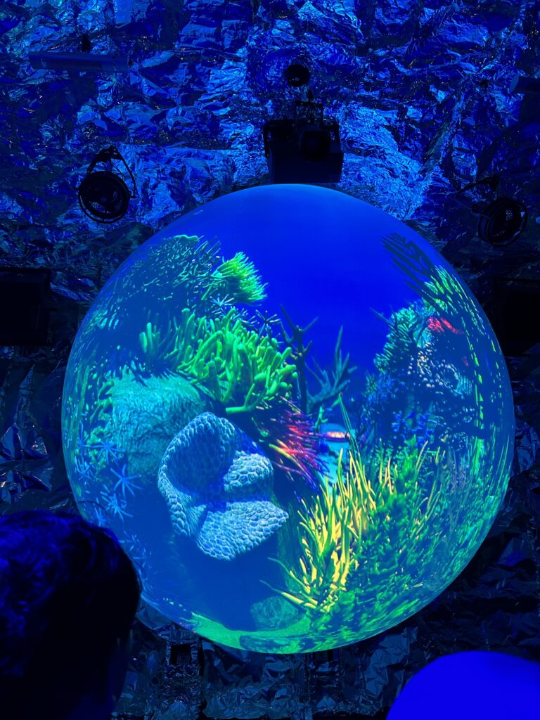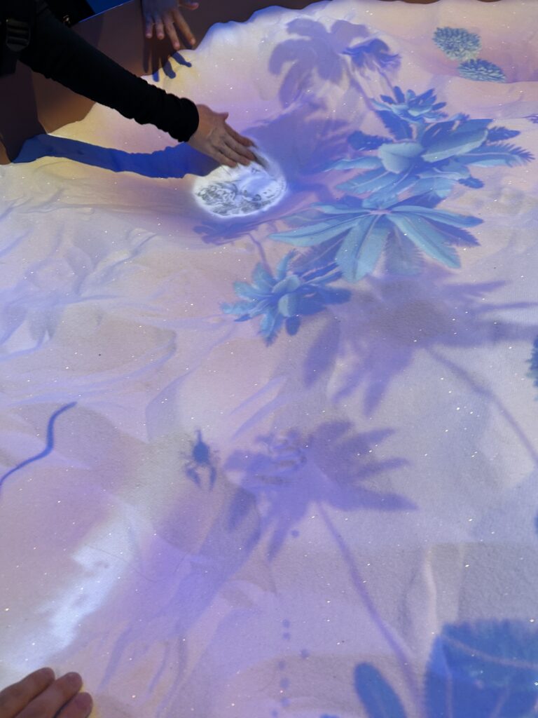 ↑白い砂に映像が投影されているのだが、時々サソリとかミミズ?が動いていて、それを触ると映像がちゃんと反応するのだ。すごい。