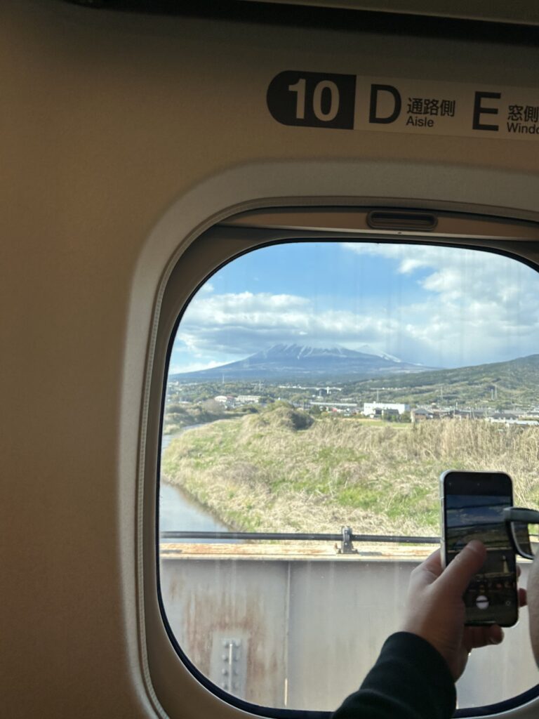 富士山は傘を被っていたけれど、それでも富士山と分かる。しかし、どうしようかと躊躇してから撮ったのに、ずっと右側に富士山が見え続けたのは驚きだ。よっぽど大きいという事が分かる。ものすごいスピードで移動しているのに。
