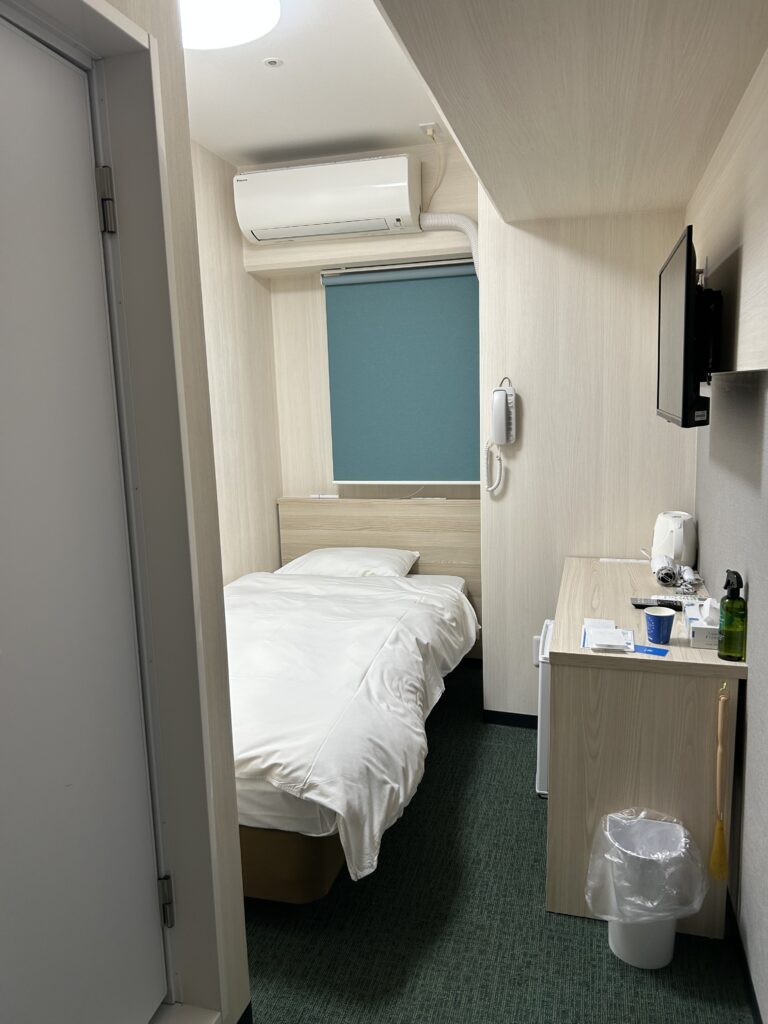 シャワールーム、というかユニットバスは狭かった。本当に人一人立つ、もしくは座るスペースしかない。5日連続で泊まれるホテルがここともう1つしかなく、もう1つは大浴場がついていたのだが、立地がよくなかったのでこちらの大浴場無しのホテルにしたのだ。実は、大浴場のないホテルに泊まったのは初めてかもしれない。旅先では。