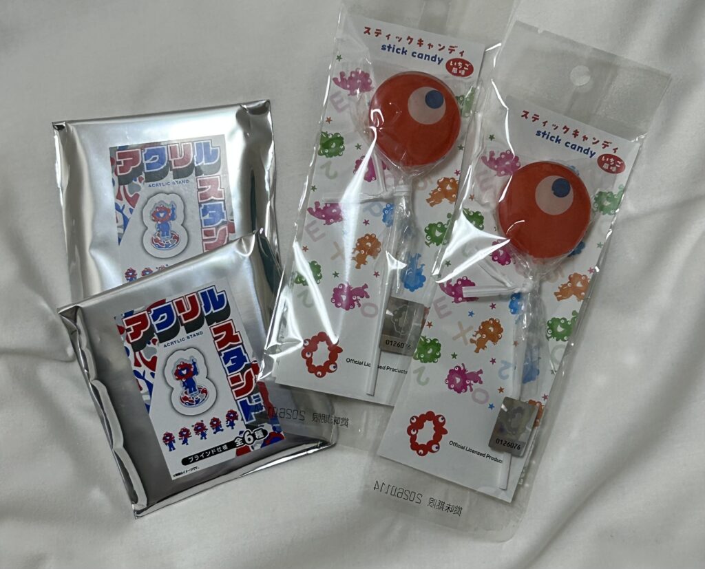 箱のお菓子の内、1つは自宅用なので開けた写真を。ミャクミャクプリントのお菓子は色鮮やかで可愛い。
