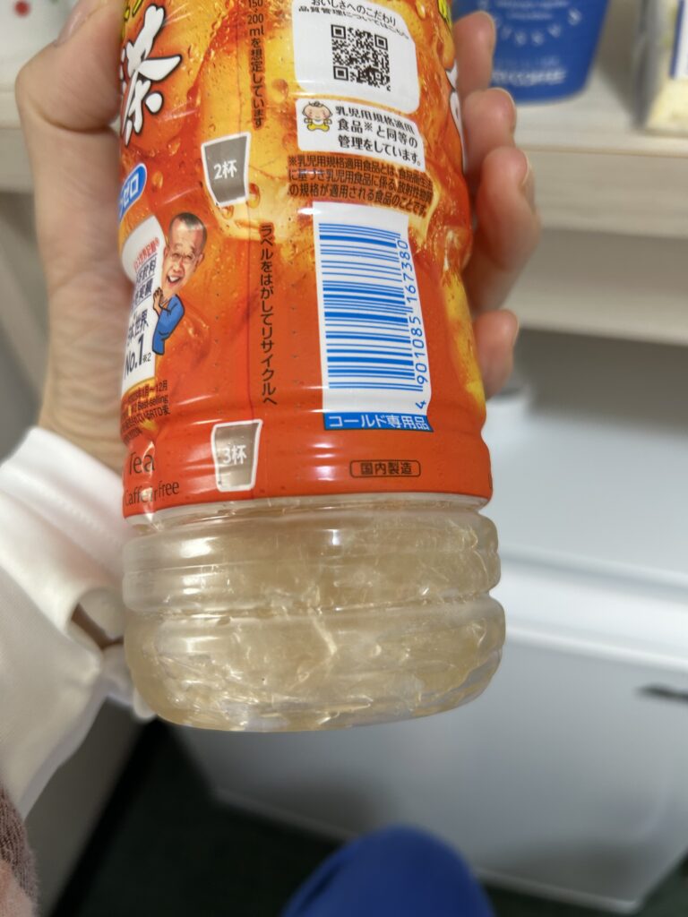 底が凍ってた。うそー、なんで凍るのよ。ヨーグルトが凍ったらどうしよう。ヨーグルトは、夕べ成城石井で4つ買って来て冷蔵庫に入れてあるのだ。因みにこの麦茶は1日以上冷蔵庫に入れてしまったから凍ったのだろう。扉側の方が温度が低いのだろうか。