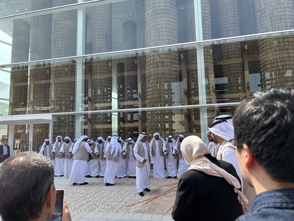 UAEのパビリオンの前だ。何やら踊りが披露されている。人だかりがすごくて写真を撮るのもままならない。そして、やっぱりイスラム圏は女性のアテンダントが見当たらない。