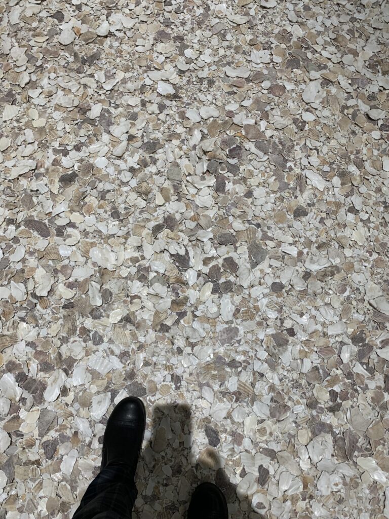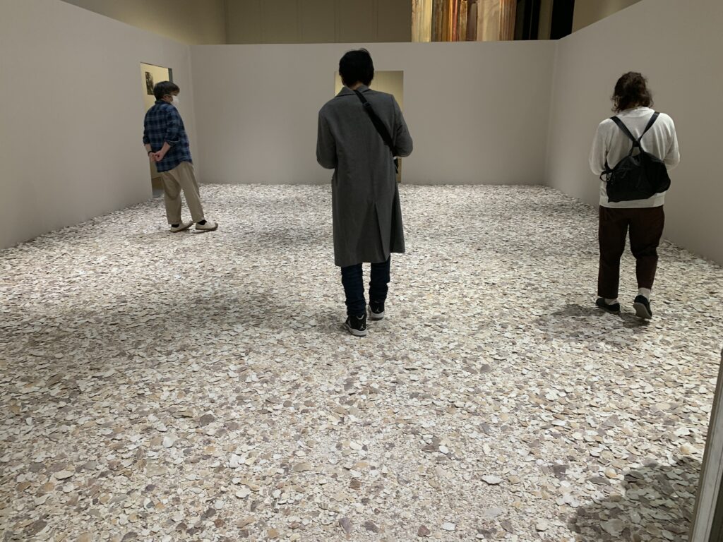 ここは貝殻を敷き詰めた部屋。ニナ・カネル氏の「マッスル・メモリー(5トン)」