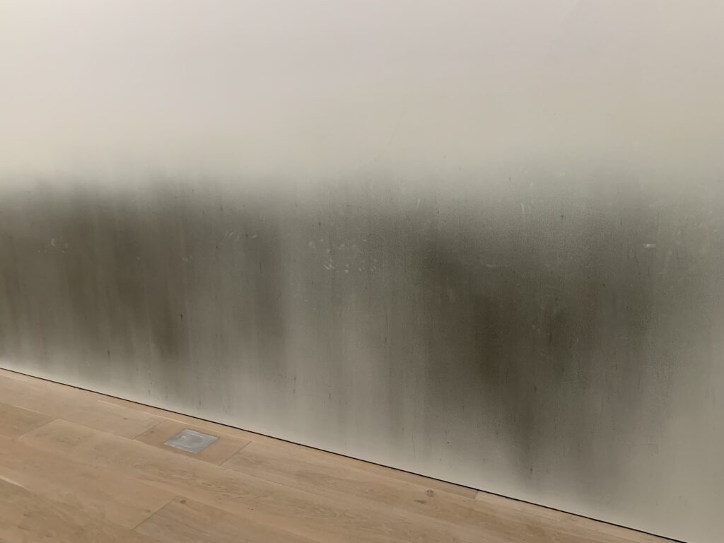 それから、このアート展では壁の再利用がされている。普通塗り直して使われると思うが、今回はわざと汚いままで。あちこちに、この白と黒の壁があった。