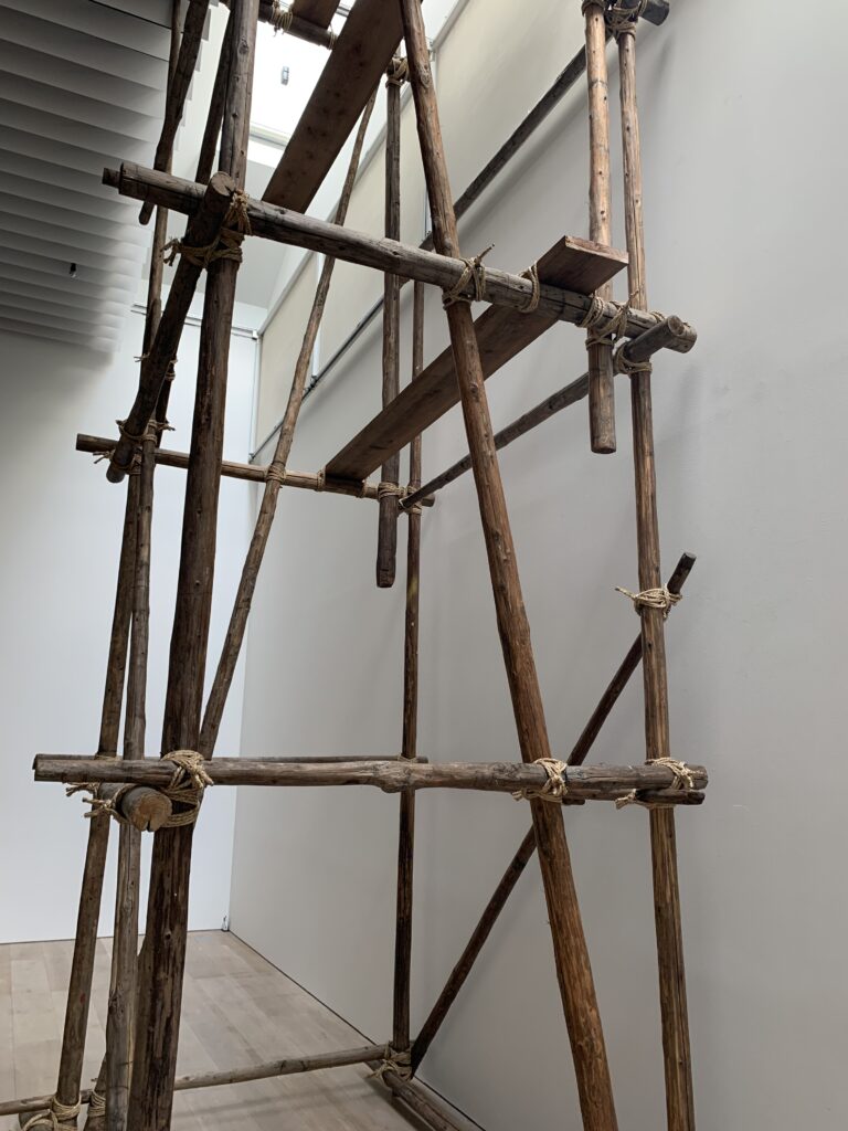 そういえば、物を運ぶよりもアーティストが移動し、その場所で制作する方がエコだよね、という考え方もこのアート展では取り入れられているらしい。この作品もそんな感じなのかな?