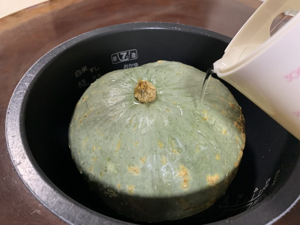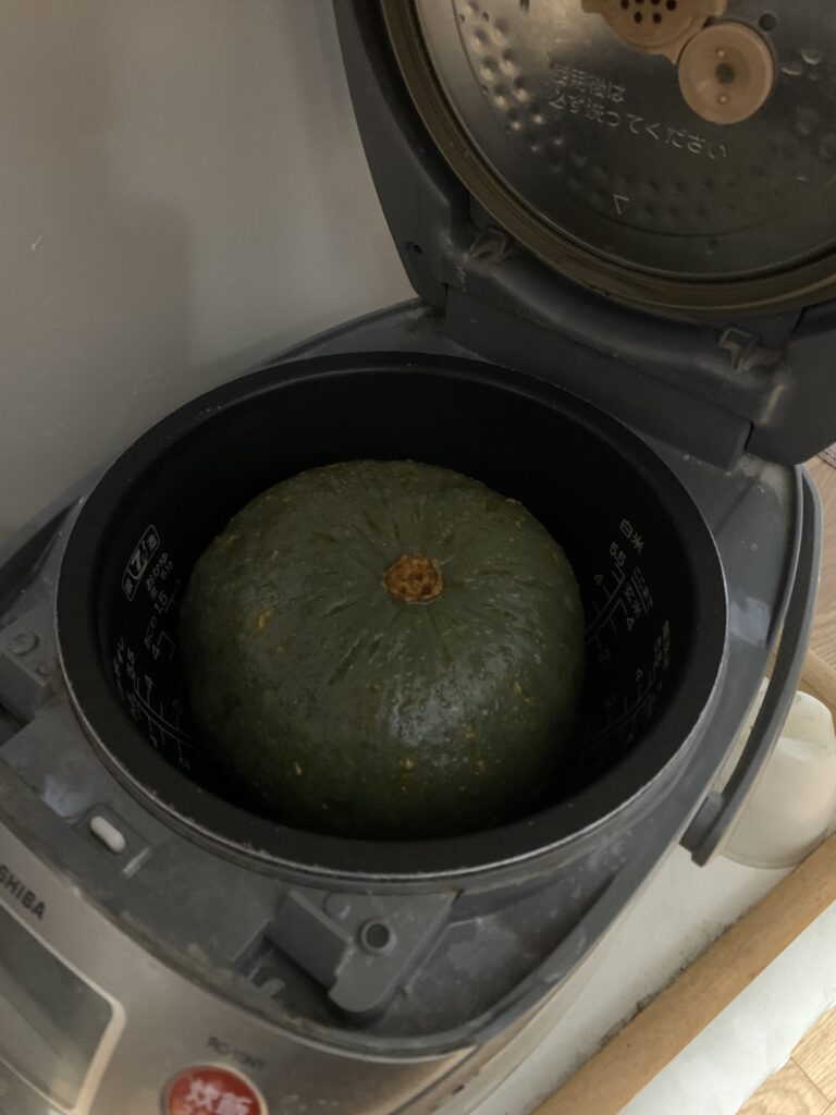 それで、今年はなるべく丸っこい形のカボチャをもらってきた。そして、これなら大丈夫だろうと思って取っておいたカボチャを、昨日炊飯器に入れてみた。
