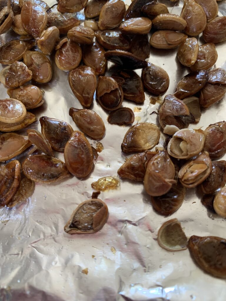 というわけで、トースターにアルミホイルを敷き、その上に種を広げて焼いた。