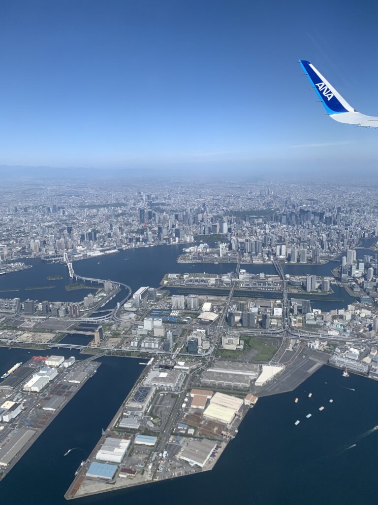 東京は晴れている。窓際の席に座って、窓の外の撮影にも忙しい。3人席の隣二つは空席だった。