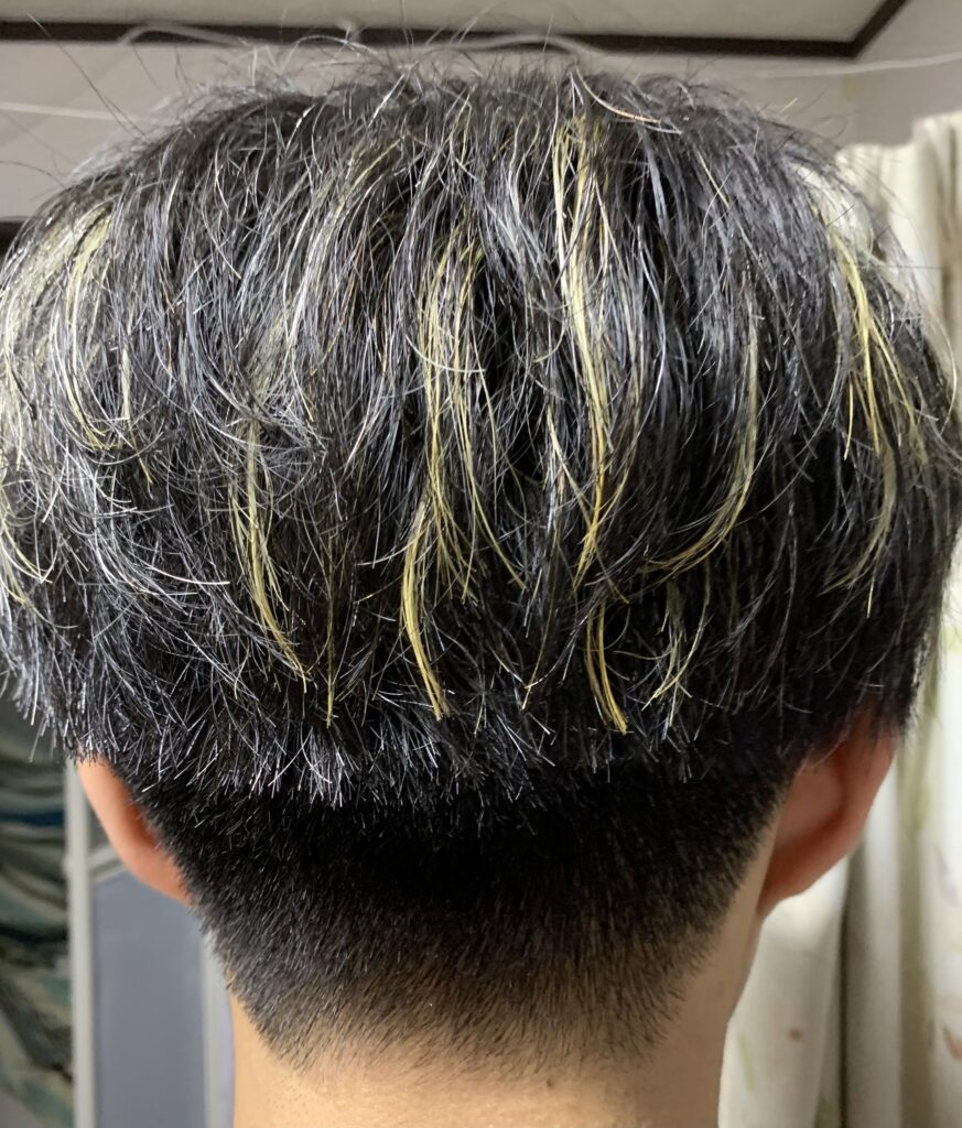 元々、毛先に金髪が残っていた。地毛は白髪が多いので、黒に金が混ざった髪をしていた。