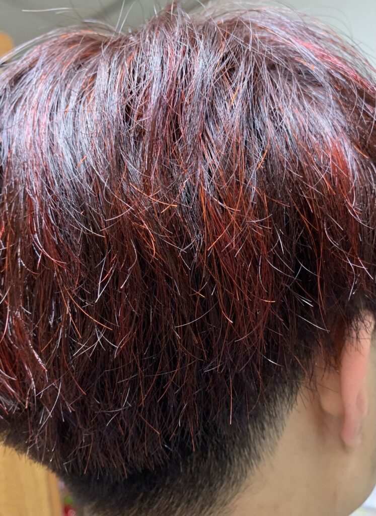 と助言した私は、きっと彼は赤にすると思っていた。メッシュにしたいと言った長男が、赤か青のメッシュにしようかなと言ったので、アニメっぽくするのだろうと思ったのだ。