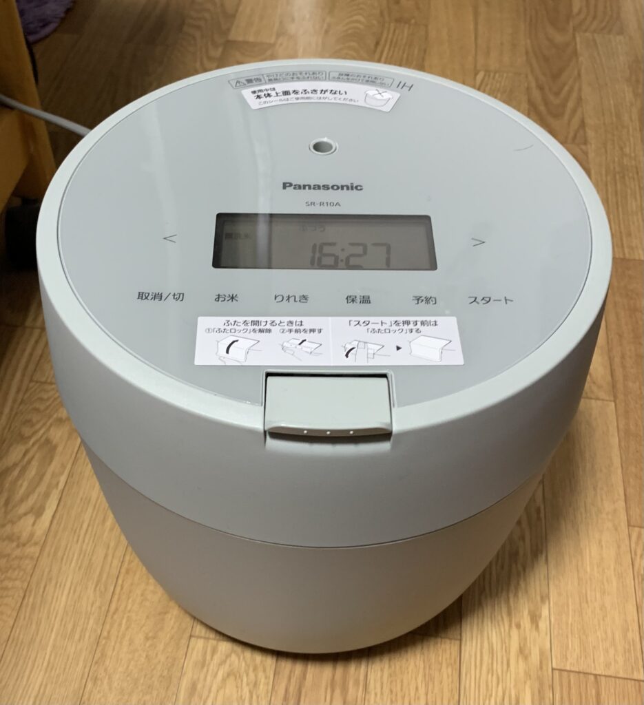 パナソニックの圧力IH。コンパクト。5合炊き。5.5ではないのだ。ただコンパクトなだけでなく、丸い。この、新しい感じがいい。そして、この店で唯一圧力釜で3万円を切っている。2万6千円くらいだった。これだ、これしかない!