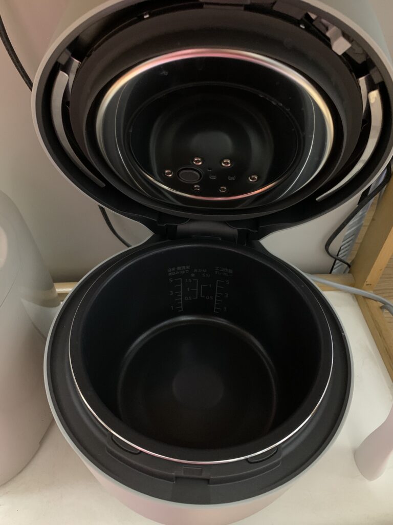 白とグリーンの色バリエーションがあった。黒もあったが、黒だけは米以外の料理も出来るという事で、3万円を超えていた。料理が出来るのはいいが、匂いが付いたりしないのかなと思った。お姉さんに聞いたら、お手入れボタンがあって、米を炊かずとも水だけ入れて一度炊くみたいな事が出来るので、それで匂いも取れるだろうという話だった。でも、高いからいいや。