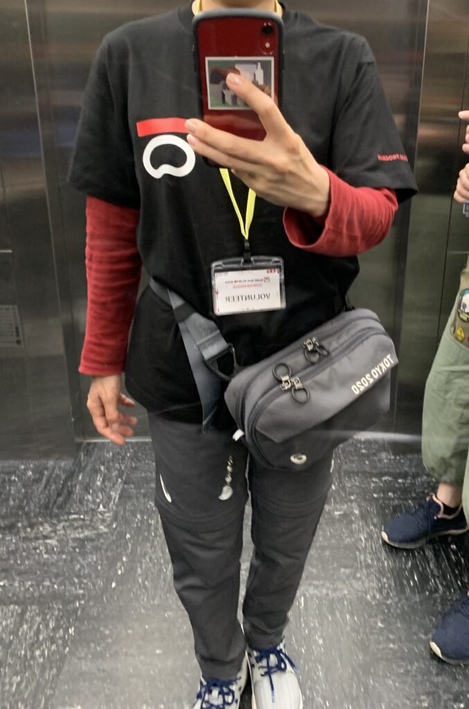数人ずつ、エレベーターで7階へ連れて行かれた。ボランティア控室に入り、皆さん早速Tシャツに着替えている。私も半そでのブラウスを脱いでTシャツを着た。もう、ここでね。この階へ来た時、