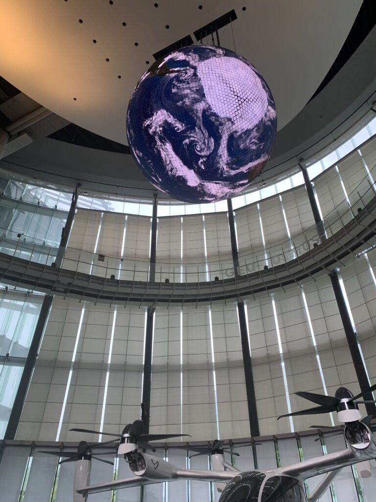 無事に写真を撮れた。そこを出て、さっきは並んでいたのに空(す)いている!と思って空飛ぶクルマシミュレーターのところにも行ってみた。そうしたら、今一緒におばけレストランに入っていたボランティアさんが、もうここで仕事をしていた。早い!先ほどはどうも、と言われなかったら別人だと思うよ。