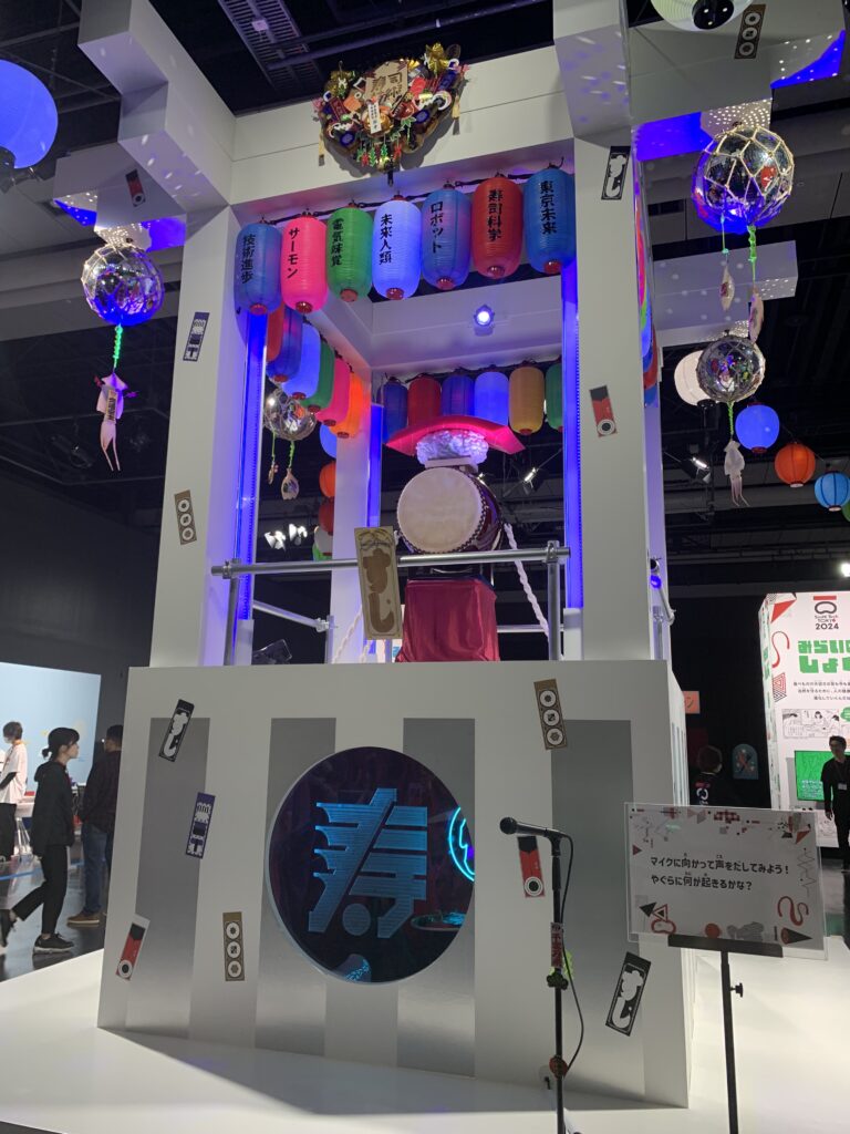 それが終わると、もう1人の方もダーツなどの方に並んだ。私はとりあえず写真が撮りたかったので、2人と別れて写真を撮るために会場を一通り回った。ツナグルマやみらいのやぐら、ロボットや空飛ぶクルマシミュレーター、おばけレストランの外観に、ミカクミライクイズ、未来ふきだし。未来ふきだしというのが、先ほど中学生が学校名や佐渡ヶ島を書いていたやつだ。私はそのふきだしに「チョコナッツ」と書いて写真を撮った。するとボランティアさんが、