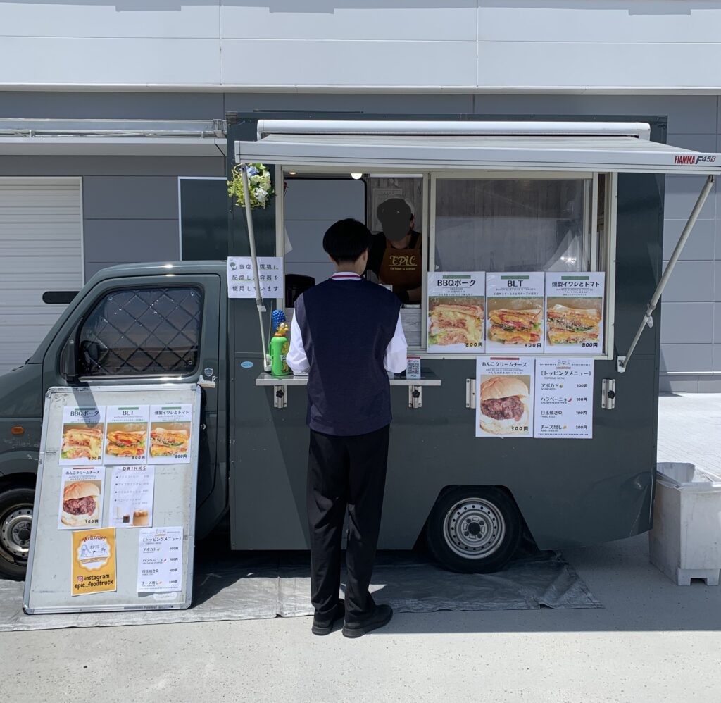 トイレを済ませ、石鹸で手を洗って、そのままキッチンカーのところへ。すごい日差しだ。キャップを被った。