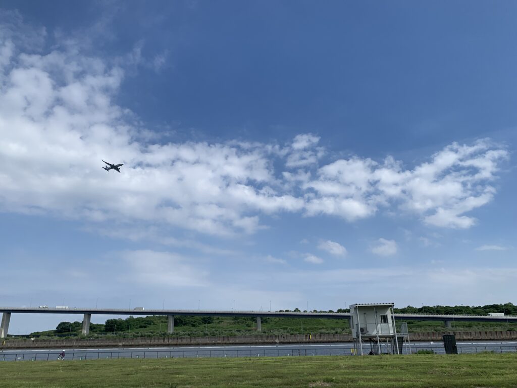 まだ業務中ではないと思い、さっと歩きながら写真を撮った。青空。