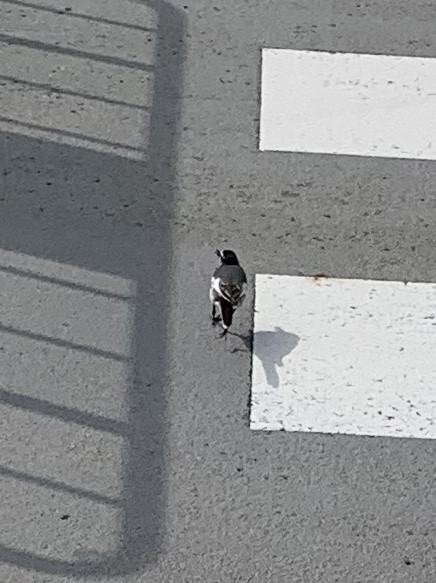 もっと横からとか撮りたかったけど、時間がないからこれで。何しろ素早く動いているのだ。でも、ずっとバス停の前をウロウロ。餌でもあったかな。