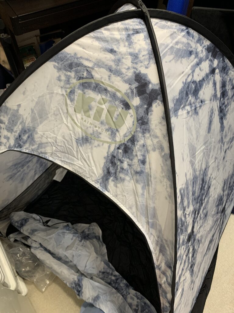 それで、しまうのが大変。昔よく使った、散髪の時に首の周りに着けるやつと同じ原理だが、大きい。夫が時間をかけてやっとしまっていた。私にはできる気がしない。そして、開ける前よりも膨らんだ状態にしかならなかった。