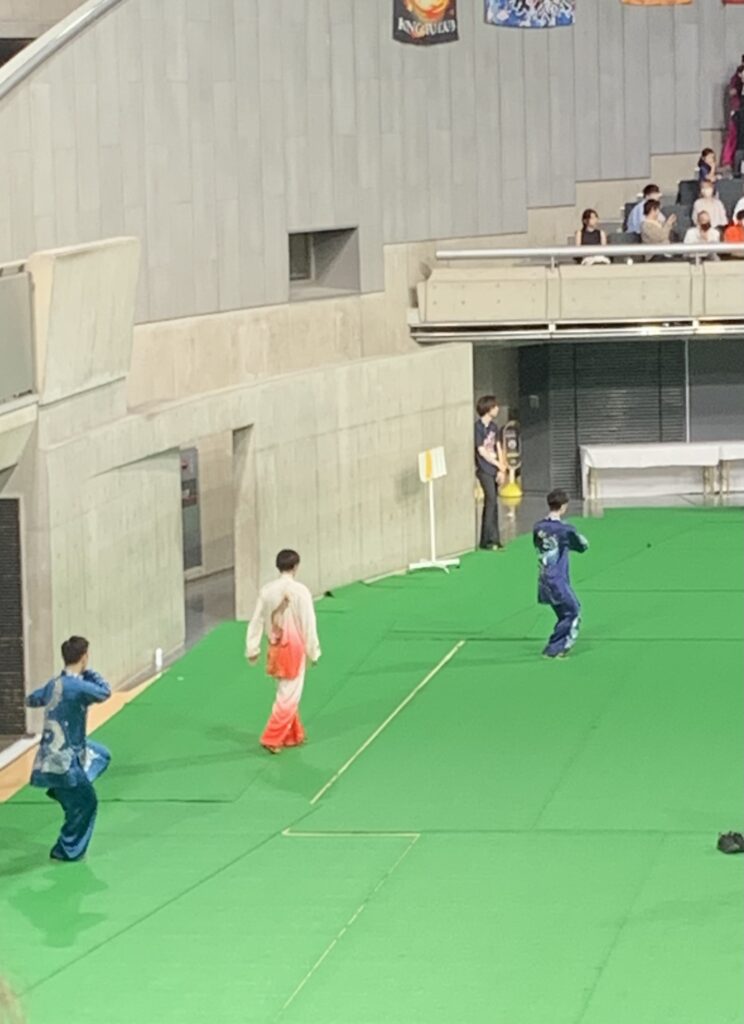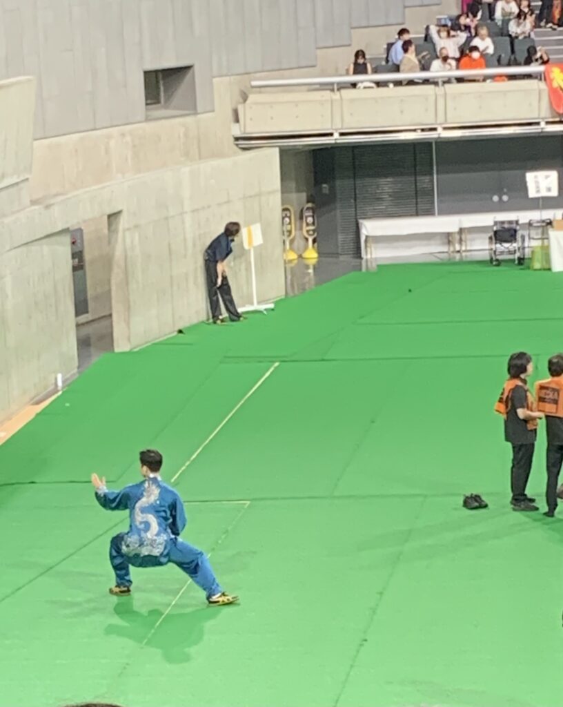 サブアリーナでは、若い子たちが練習をしていた。パン!とすごい音がする。あれは、足を挙げた時に、その足を手で叩いているように見える。チャイナ服男子、新鮮だ。競技人口が少ないという事だが、カンフー映画とかに出られそうだな。