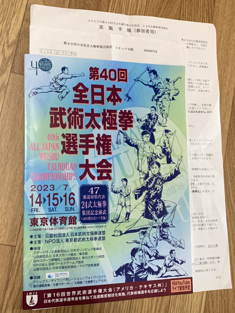この選手権大会は7月14,15,16日に行われる。16日の夕方5時ごろから集団演武がある。前日にはリハーサル。私たちボラセンで集められたボランティアは、15日、16日の午後に活動があった。場所は東京体育館である。