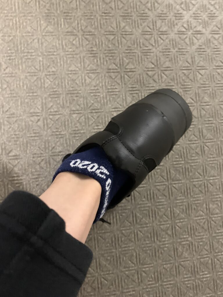 フィールドキャスト・シティキャストのユニフォームで赴く人もいると聞き、どうしようか迷ったが、必要ないと判断した。けれども、どこかにフィールドキャストの証をと思い、こっそり靴下だけ。ズボンをまくらないと見えない。
