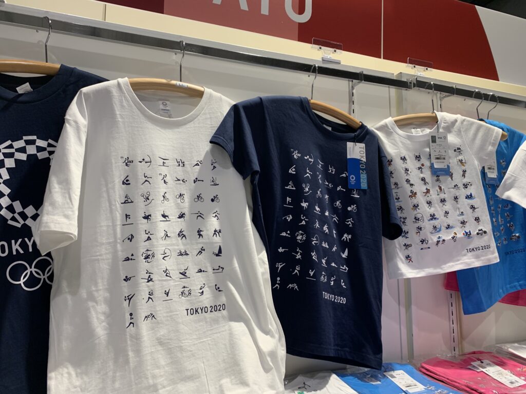 ピクトグラムー!これが手ぬぐいかタオルだったら買ったのになー。Tシャツだと着なさそうだし、高いし。タオルだったらなー。