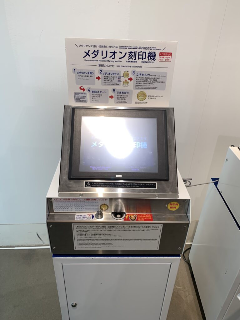 入り口の方へ戻ってくると、こんな機械が。メダル刻印機だ。