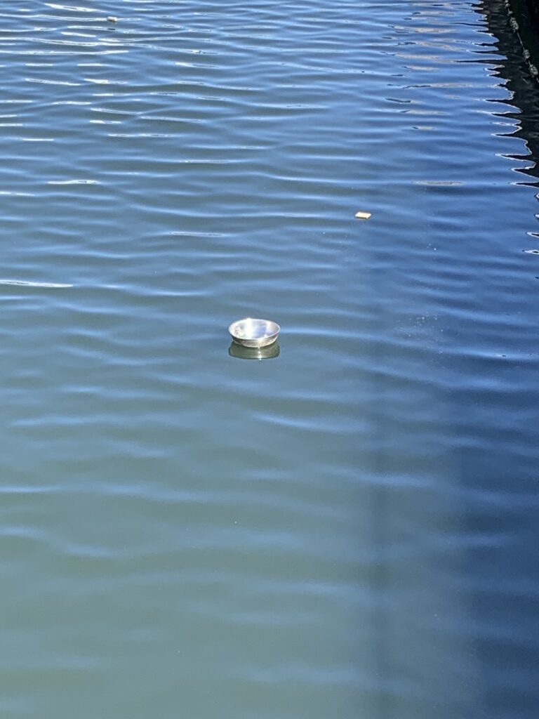 写真だと大きさが分かりにくいかな。ピカピカのボウル。どうして川を流れているのだろう。