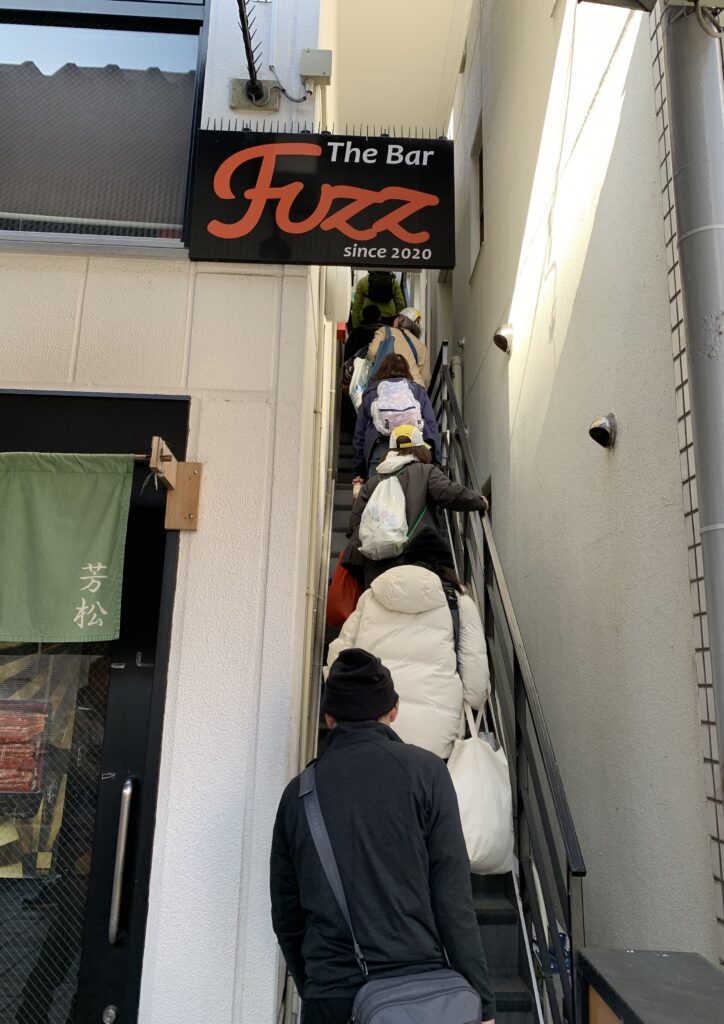 そして、もんじゃのお店へ。言われた通り、階段がけっこうキツイ。