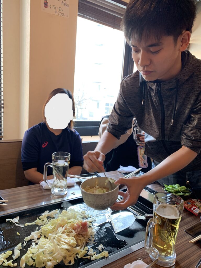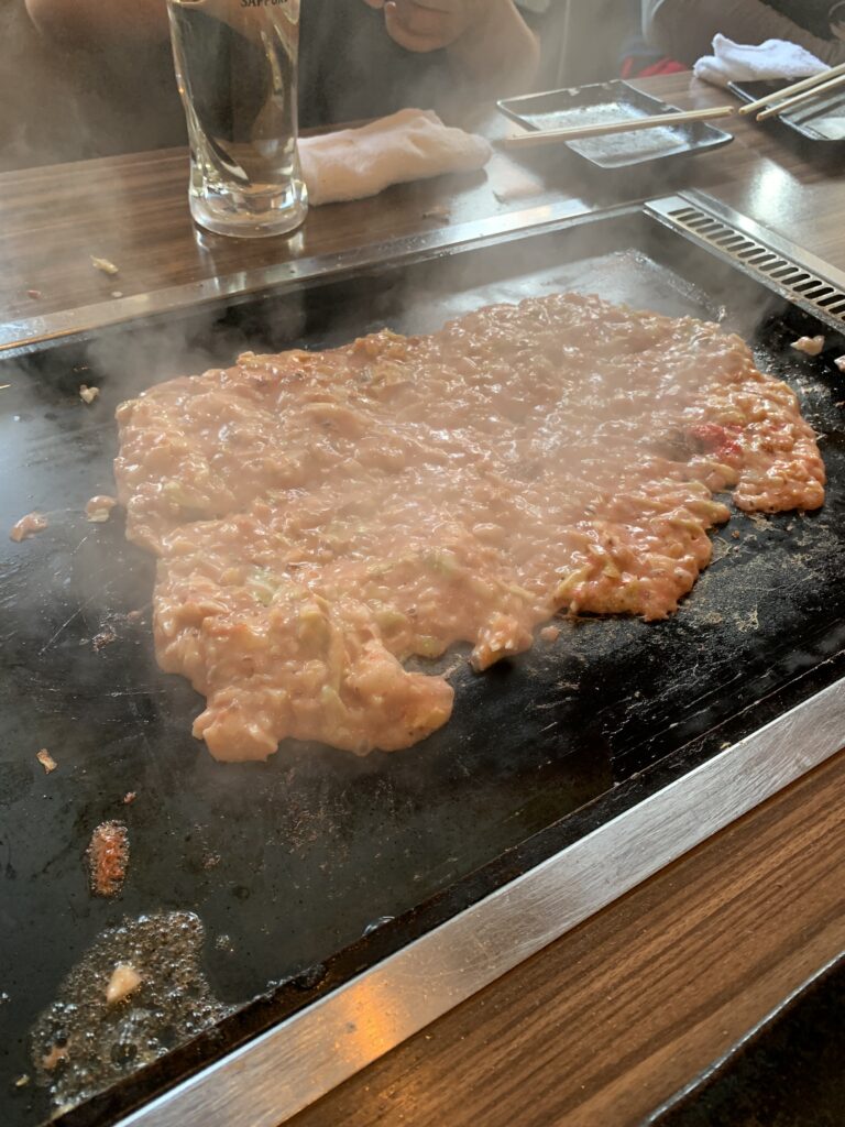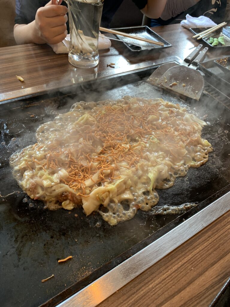 店員さんが芸人さんみたいな人だった。SNSに上げてOKだと言っていたので、おのお兄さん面白いし、もんじゃの焼き方もプロよ、と宣伝しておく。