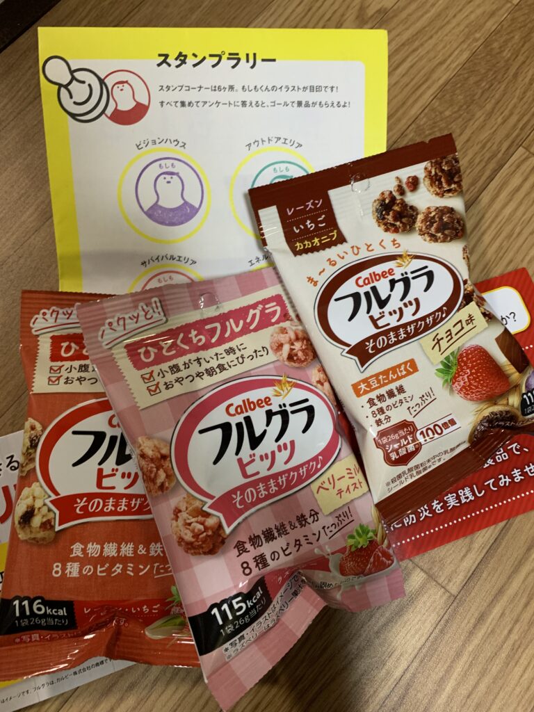 ビブスを返すのは昨日と同じだが、もう一つ、もらって帰ってくださいと言われた物がある。それは、フルグラビッツ。やっぱり余ってしまったのね。入場者は、昨日よりも今日の方が、そして去年よりも今年の方が多かったらしい。が、目標としている来場者数には到達していないらしい。だから、スタンプラリーの景品も余るわけだ。