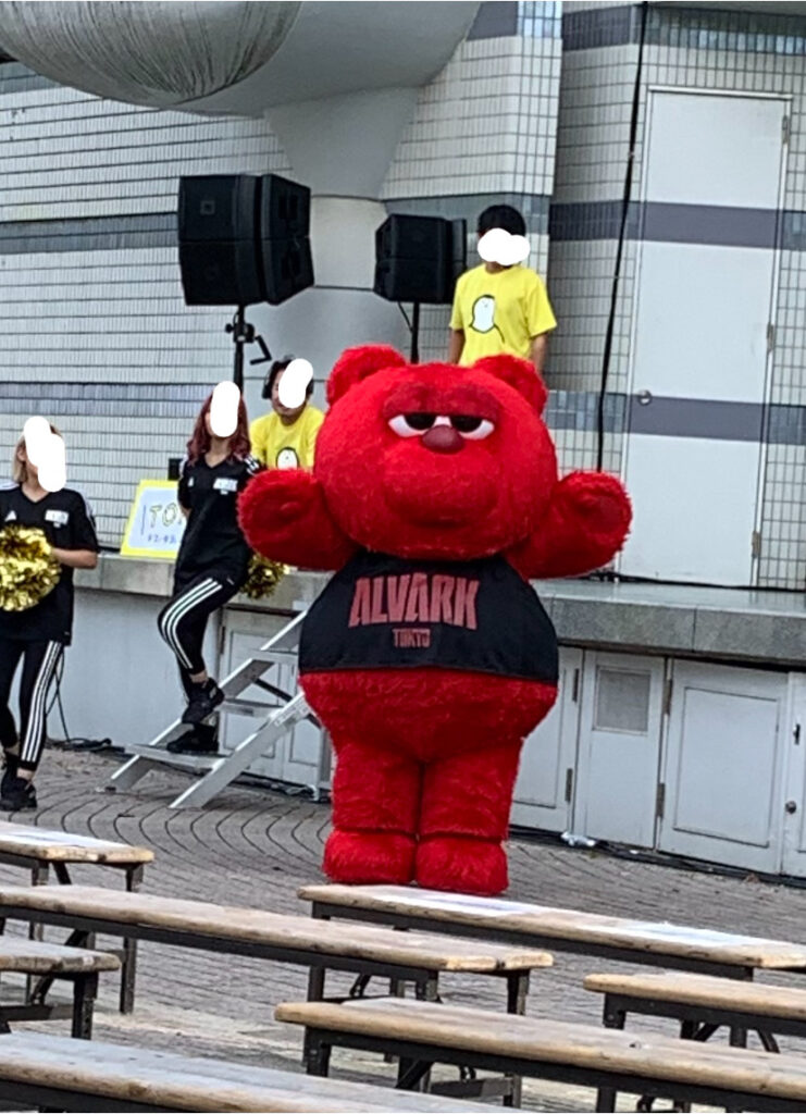 アルバルク東京のステージがやっていて、最後にお客さんをステージへ誘導していた。けっこう若い男性などもステージに上がっていて驚いた。そうか、これバスケットボールチームのステージなのか。赤い熊のような着ぐるみがいた。