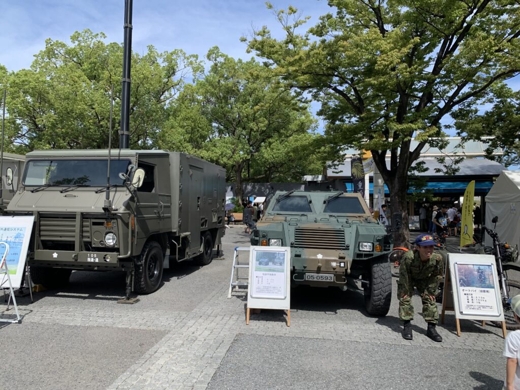 それから、自衛隊のカレーも食べてみたいと言っていた。でも、あっという間に整理券は無くなったようだ。11時からカレーの配布が始まって、そうすると空になった容器を捨てに来る人が増えてきた。