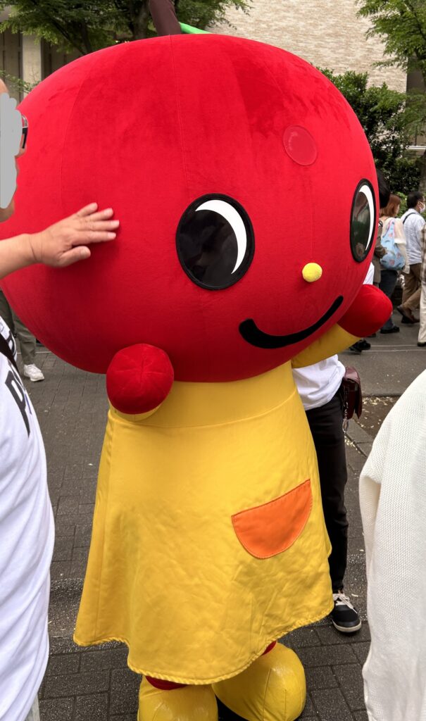 相変わらず人が多く、混雑していた。NHKを目指していたら、手前に着ぐるみを着た赤いやつがいた。
